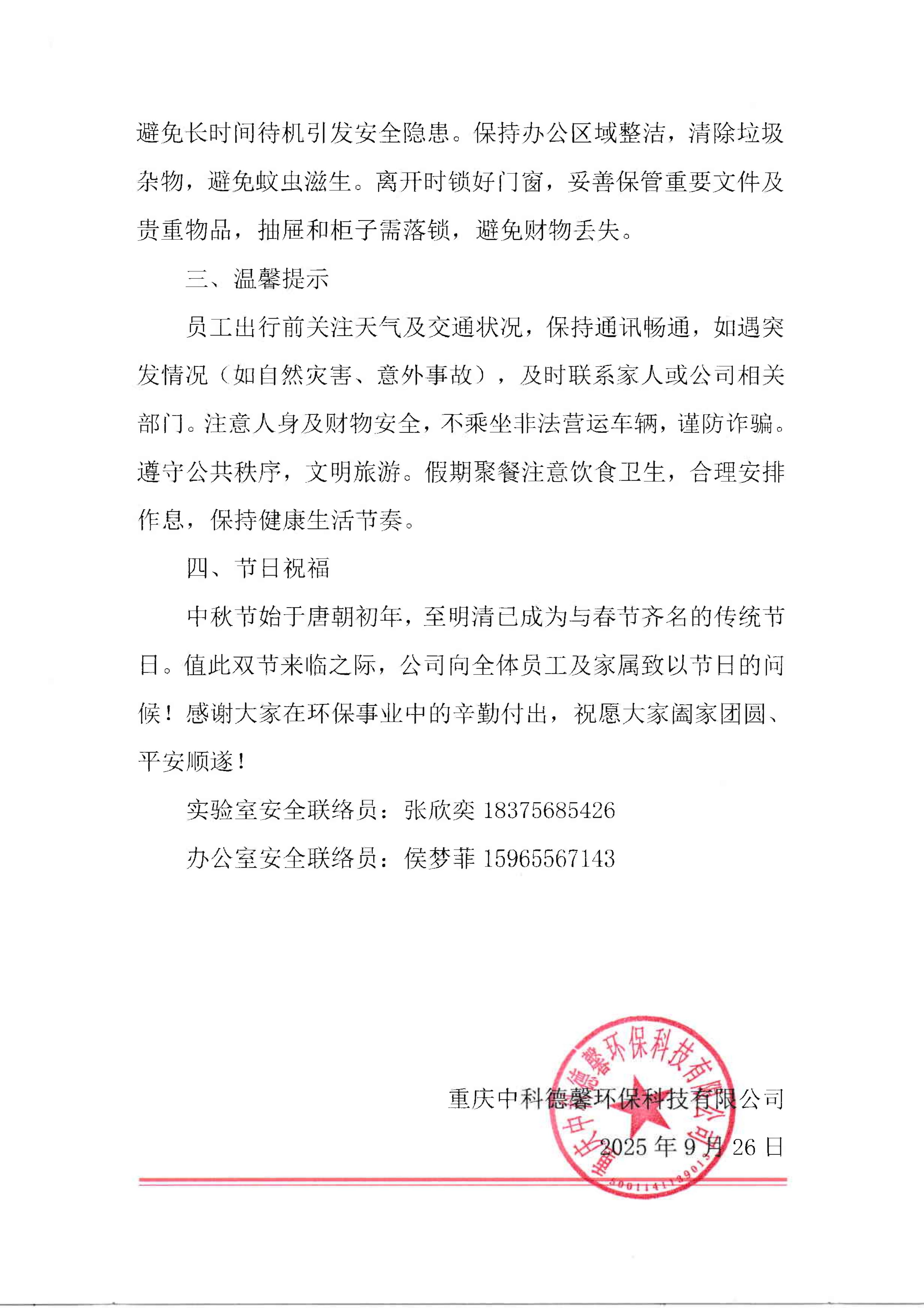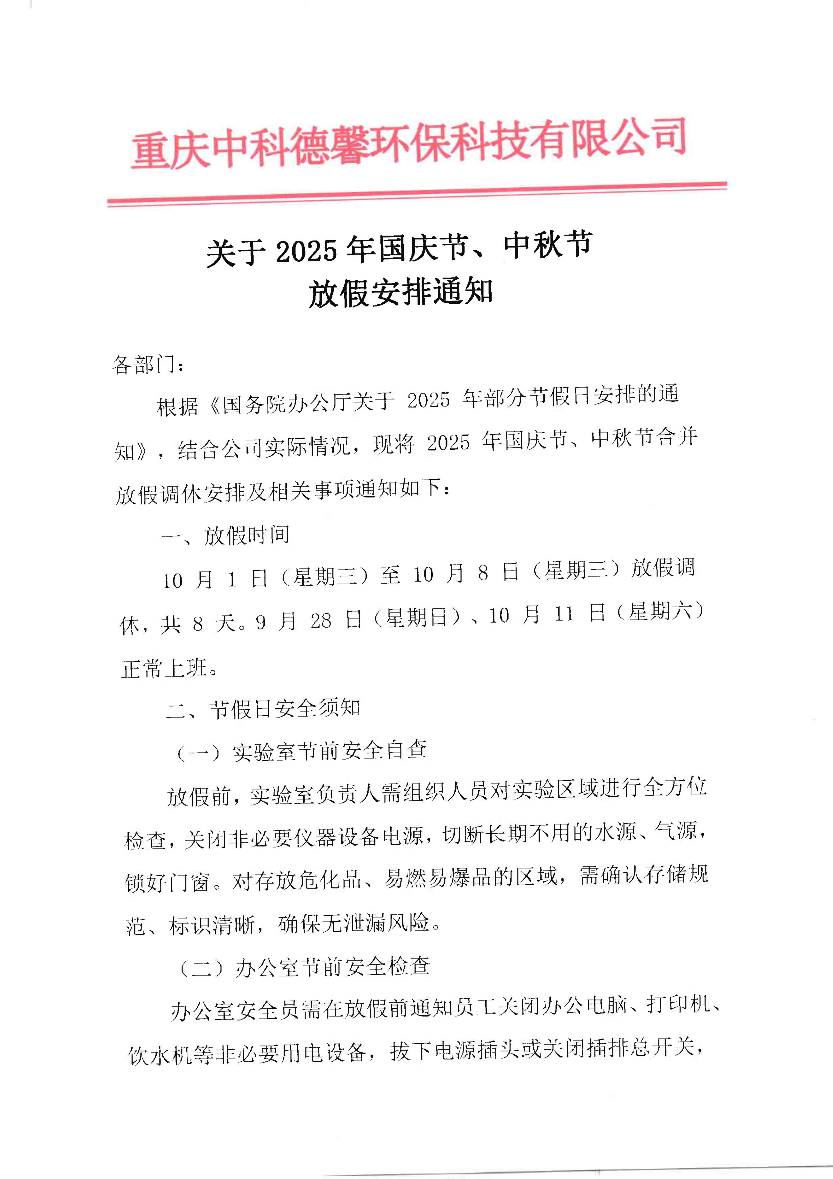 中科德馨關(guān)于2025年國慶節(jié)、中秋節(jié)放假安排通知