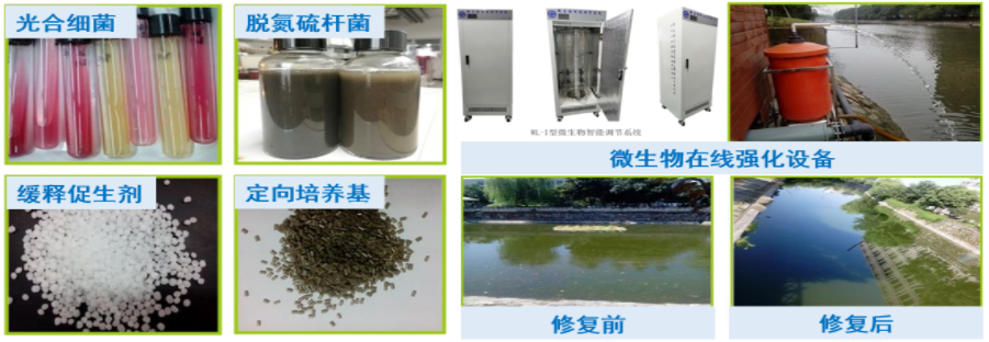 采用自主研發(fā)的微生物在線投加裝備、靶向脫氮促生劑和電磁波激活等技術(shù),原位強(qiáng)化黑臭水體中氮磷等污染物的去除,已在浙江諸暨、舟山、平湖等河道生態(tài)治理工程中應(yīng)用。